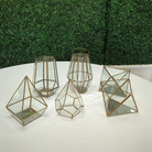 This Mixed Geo Lantern Collection is ideal for illuminating any space. The gold metal frames feature a geometric design that adds a modern, luxe touch, and can be filled with either candles or flowers to suit your decor. The perfect decoration rental for any event!