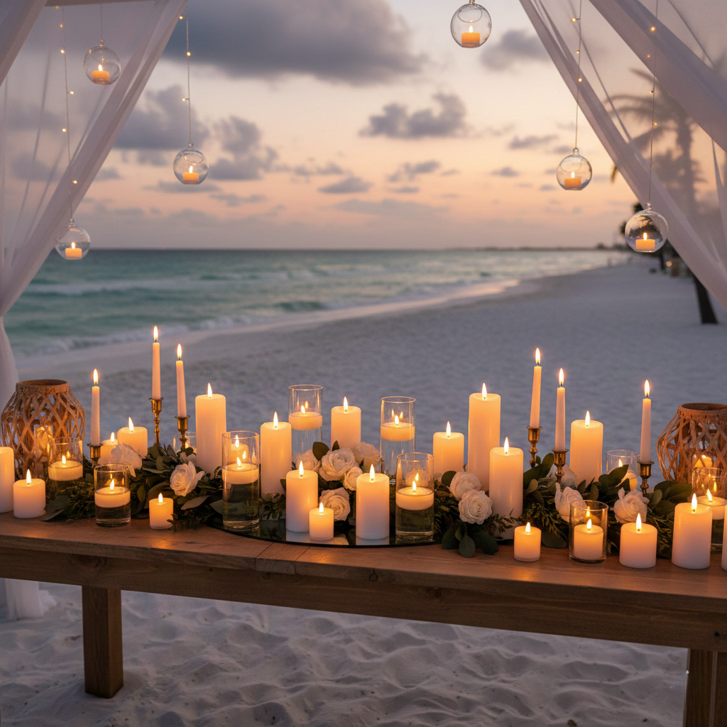 - Floating LED Candles: Perfect for pool features, glass cylinders, or coastal centerpieces.