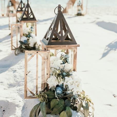 Looking for the perfect piece to finish off your decorations? Lanterns are a great option to add ambient light and a little texture to your design! Whether you are planning a romantic indoor reception and need the perfect centerpiece, or just want to add the perfect aisle marker for your beach wedding ceremony, lantern rentals provide an easy and convenient solution. Our lanterns are available in a variety of styles and sizes to suit any occasion. From classic vintage lanterns to modern lanterns, rustic lanterns, boho lanterns, and traditional lanterns, we offer options that fit any taste and budget. With affordable pricing and flexible rental periods, our lanterns are an excellent way to add a touch of ambiance and functionality to any indoor or outdoor gathering. Look through our collection below and contact us today to learn more about our lantern rental options and make your next gathering memorable.