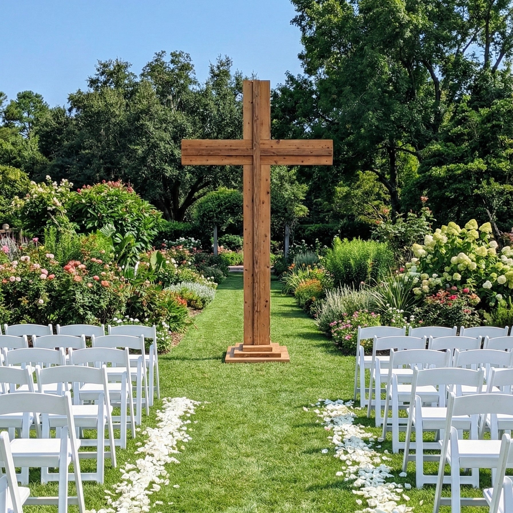 Live Florals: We can collaborate with you to adorn the cross with fresh, live flowers for the ultimate luxury experience. (Requires custom quote).