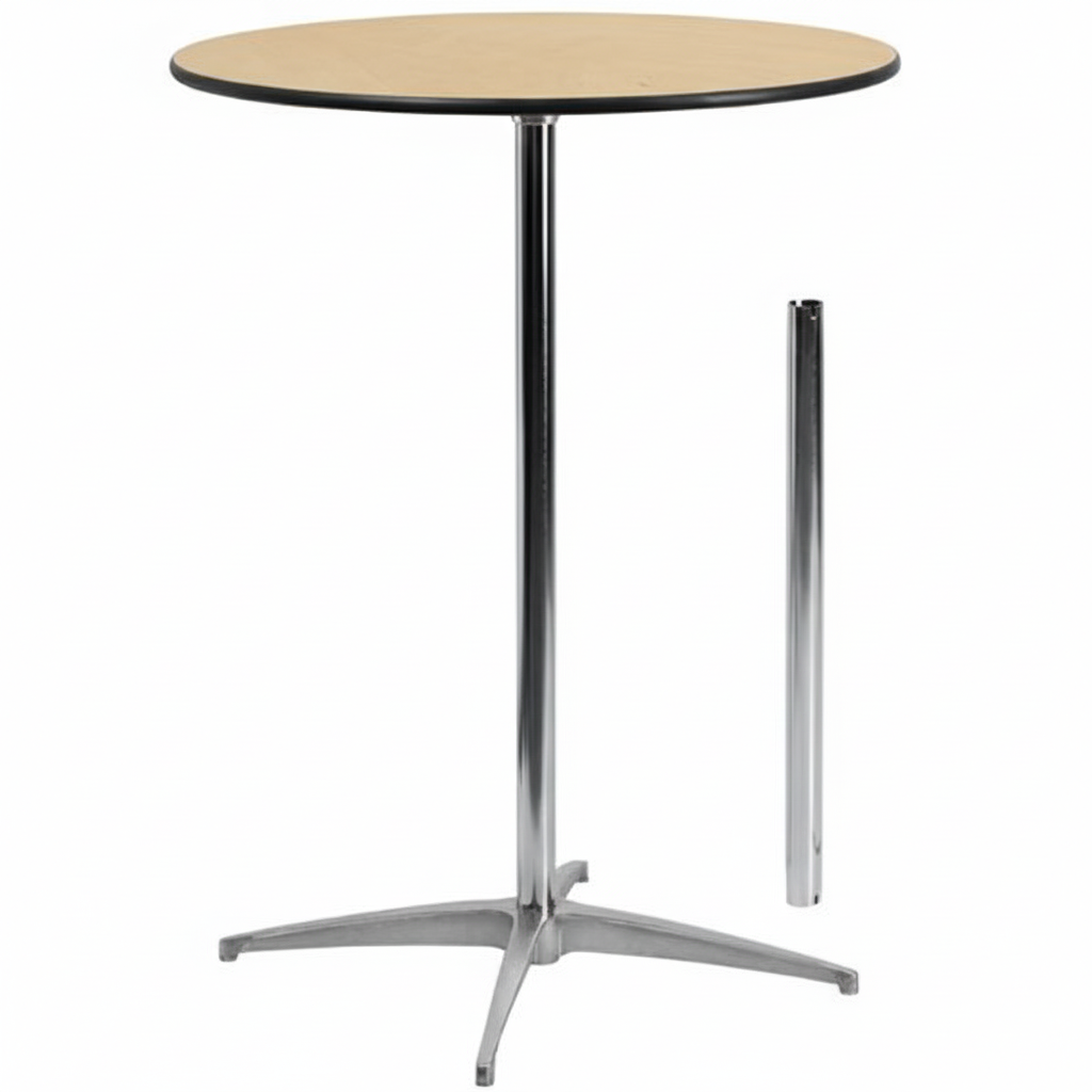 Our cocktail tables feature two height options, allowing you to utilize a standing "Pub Height" for mingling or a standard "Seated Height" for intimate bistro-style seating.